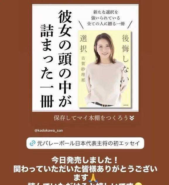 目前已经正式退役的日本女排前队长古贺纱理那,跨界出版新作,于北京时间7月初全面发布了她的首部随笔作品《不想后悔的选择》。据悉这本书由日本知名出版社出版,已经于7月2日正式发售,并于7月6日举办出版纪念活动,作为一位从16岁就登上国家队舞台、并在东京与巴黎奥运周期担任核心主力的运动员,古贺此次通过文字揭示了她运动生涯背后的心路历程和人生抉择。